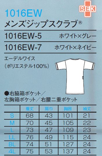 スペック メーカー フォーク (FOLK) 品番/シリーズ 1016EW/メディカルウェア 商品名 メンズジップスクラブ 素材 エーデルワイス (ポリエステル100%) 仕様 右脇箱ポケット/左胸箱ポケット/右腰二重ポケット カラー 5:ホワイト×グレー 7:ホワイト×ネイビー サイズ S〜4L 加工 ※ご要望の加工は下のバナーをクリックしてお求めくださいませ。